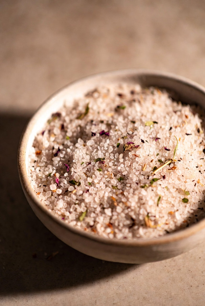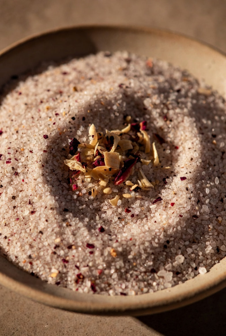 A mineral and botanical blend created for warm water use. Intended to help release tension, encourage relaxation, and support nervous system settling.